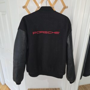 Genuine Porsche jacket, size large, leather sleeves, excellent condition.
